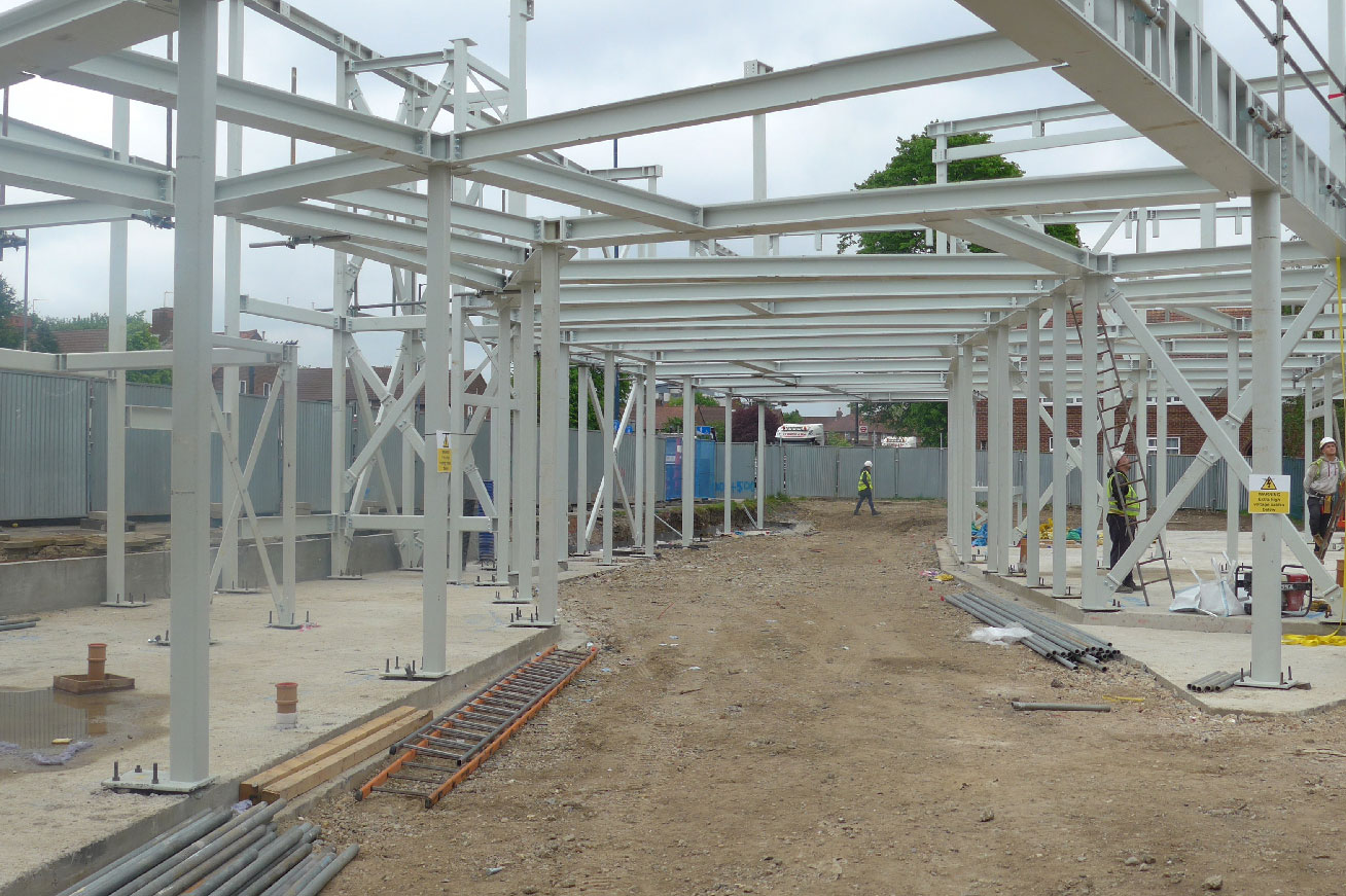 Steel framed on piled foundations in an extremely congested site with a maze of U K Power network cables below the ground. The routes of these cables dictated the structure causing structural design complexities with the ground works and superstructure.